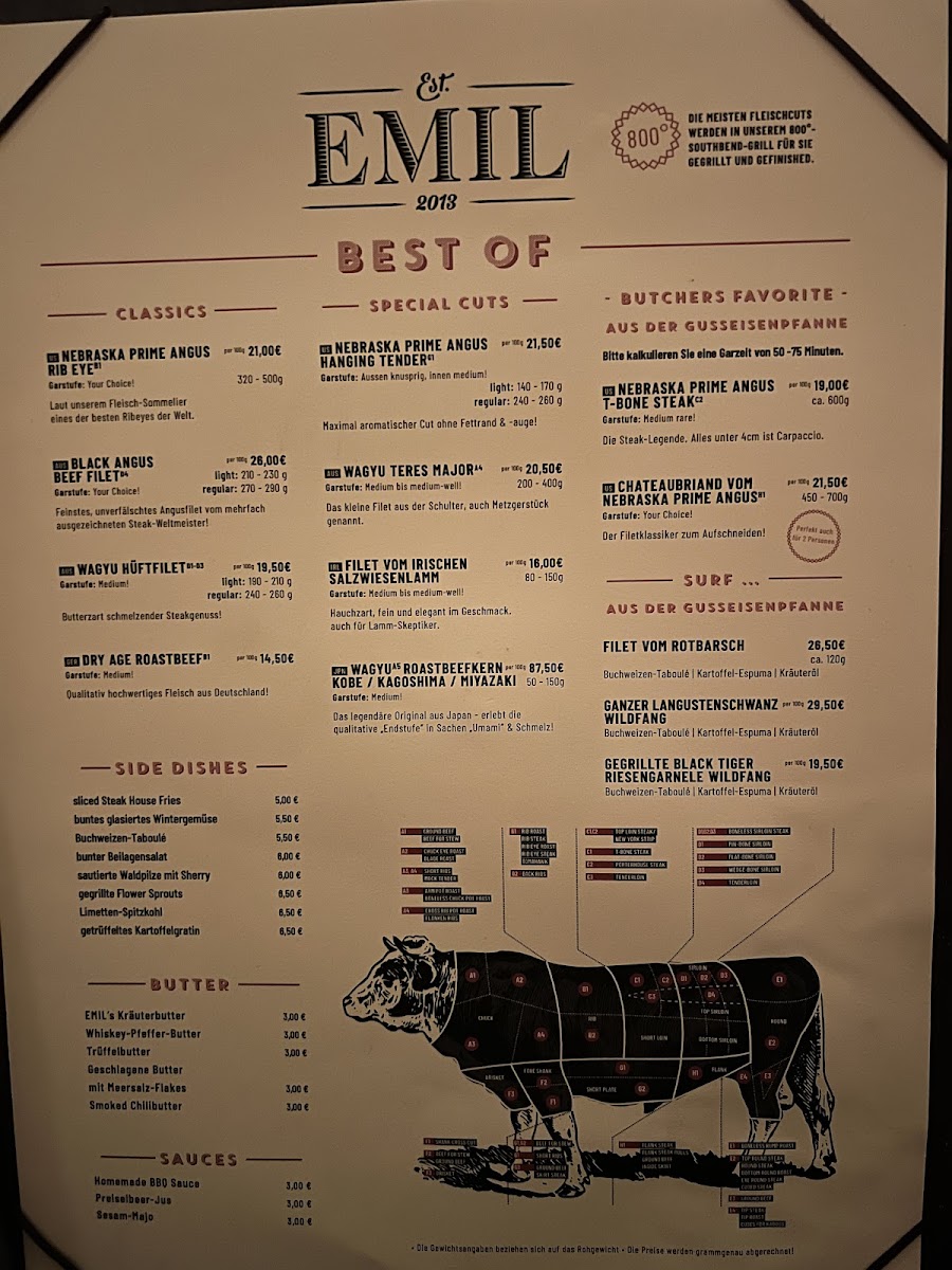 Welcome to EMIL Grill & Meer, a culinary gem nestled in the heart of Dortmund at Emil-Moog-Platz. This exquisite restaurant specializes in fine dining, showcasing an array of mouthwatering dishes that elevate your dining experience. The star of the menu, as echoed in numerous glowing reviews, is their exceptional steak. Diners rave about the Nebraska Angus Ribeye, perfectly cooked medium-rare, and bursting with flavor.
