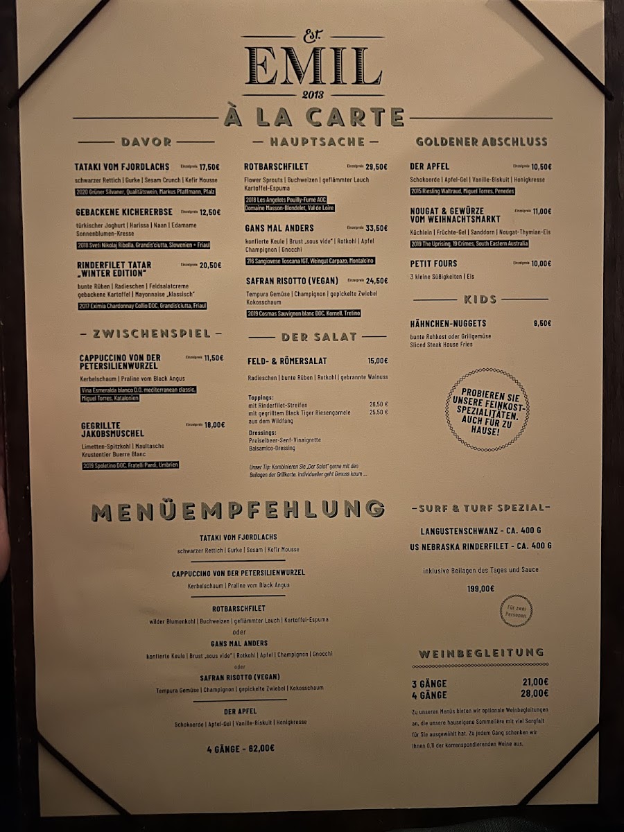 The atmosphere is warm and inviting, making it suitable for both casual meals and special occasions. Guests praise the attentive and friendly staff, who ensure a seamless dining experience. Whether indulging in the delightful surprise menu or savoring a four-course dinner, EMIL Grill & Meer consistently delivers memorable culinary moments. With an emphasis on quality and service, this restaurant is a must-visit for anyone seeking a top-notch dining experience in Dortmund.
